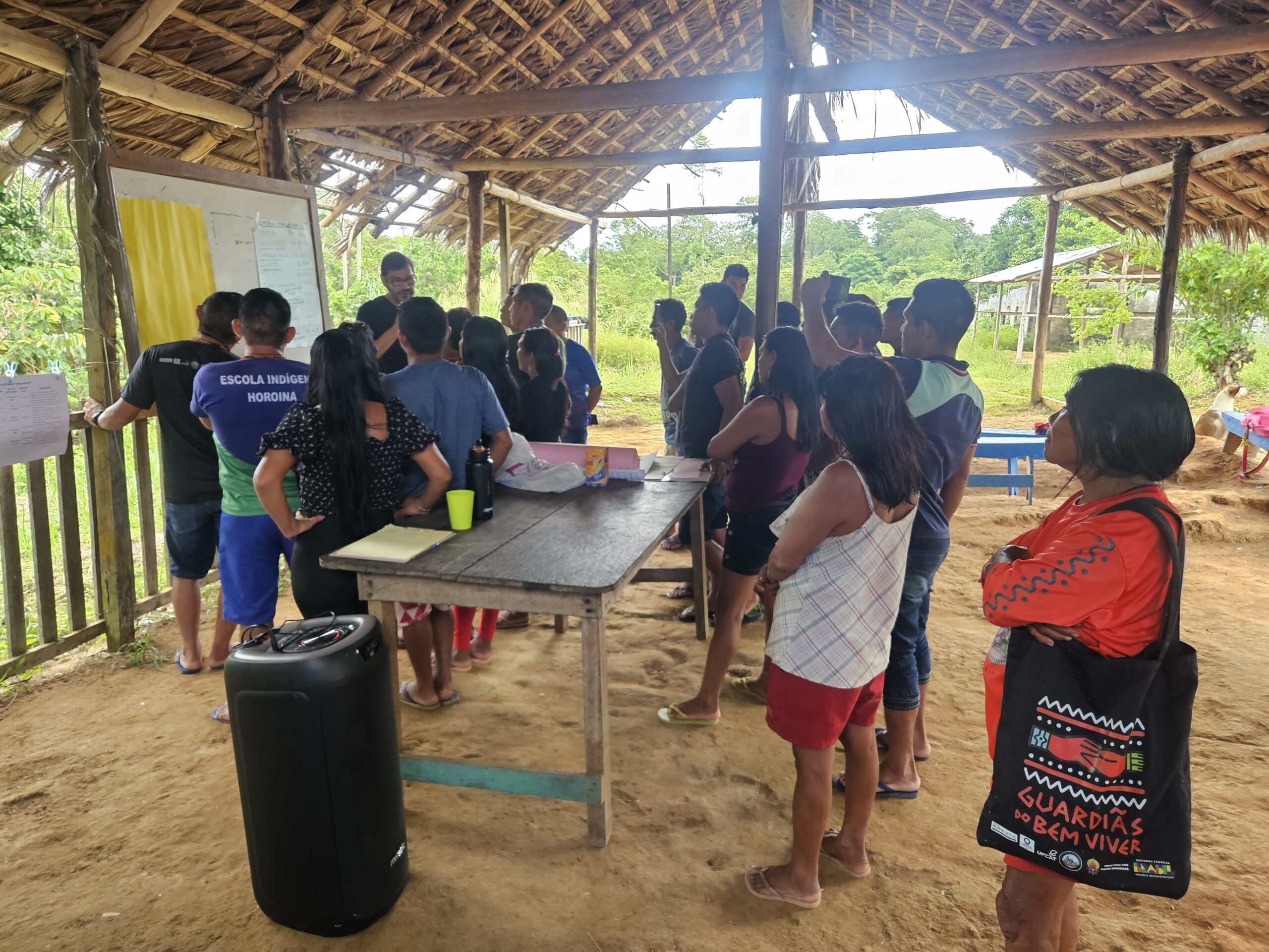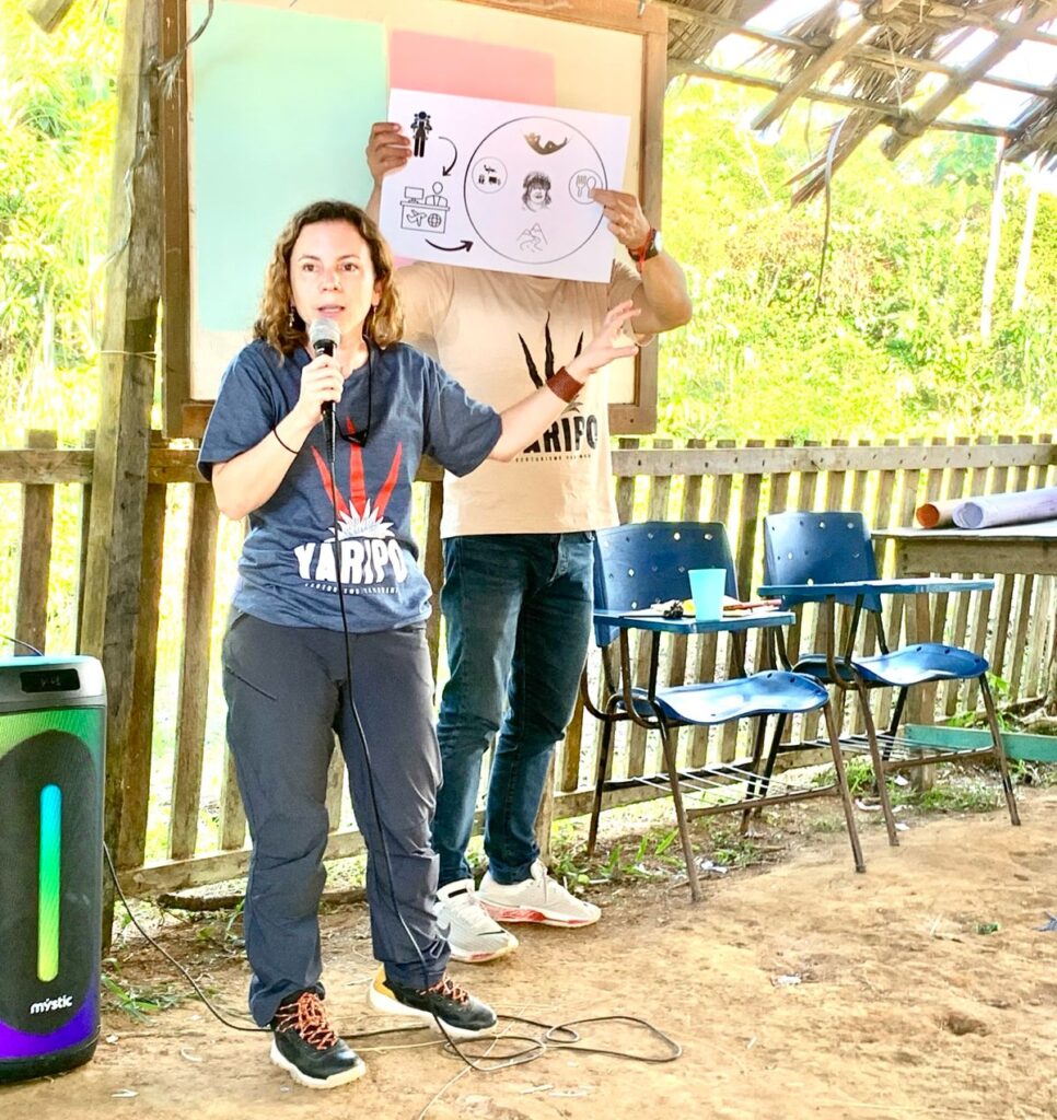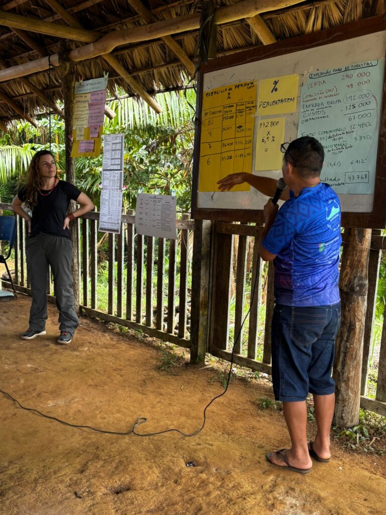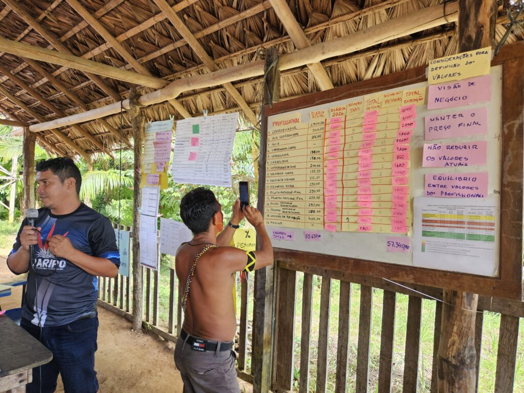 • atividade de campo no território Yanomami e com a comunidade indígena que trabalha no Yaripo com: oficinas de construção coletiva como a redefinição de cargos, atividades e remuneração, indexação de valores, cálculo do Fundo Comunitário e planejamento do Fundo de Manutenção.
